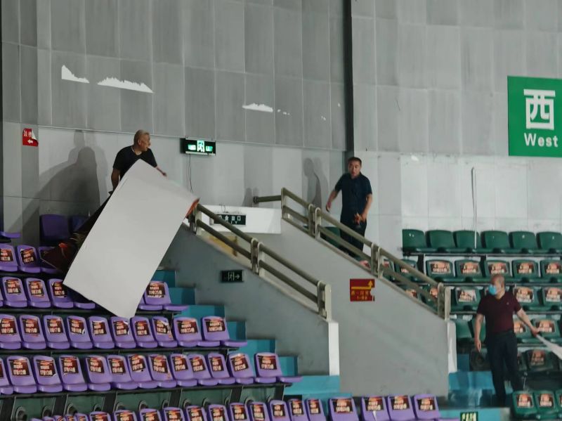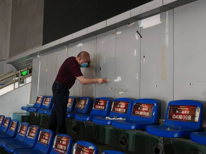 活動當天,全體黨員干部及部分不當班職工準時到達徐州體育館,按照預先分組進行任務(wù)分配,以主席臺為中心,向兩邊區(qū)域延伸進行地毯式清理。此次活動主要清理體育館內(nèi)部四周墻體,摘除過期廣告牌、鏟除墻面標簽及清理觀眾席衛(wèi)生死角等。