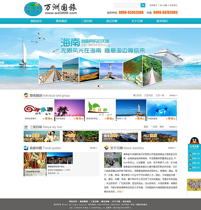 海南省萬洲國際旅行社有限公司是經(jīng)海南省工商局登記注冊(cè),由海南省旅游局審批,并足額繳納質(zhì)量保證金后,于2010年成立。公司管理、業(yè)務(wù)、技術(shù)等骨干人員,多為海南建省后在海南旅游建設(shè)大潮中踏浪而歌的佼佼者,它們久經(jīng)旅游事業(yè)規(guī)則的不斷洗禮,緊跟著海南旅游共同成長,是營銷、酒店、房產(chǎn)、交通、網(wǎng)絡(luò)、餐飲等各個(gè)行業(yè)中不可多得的人才。因此,萬洲國旅在酒店、景區(qū)、車輛、導(dǎo)游、餐廳等環(huán)節(jié)上早已有了劣實(shí)的基礎(chǔ)。憑著多年的經(jīng)驗(yàn) 、專業(yè)的知識(shí)、廣泛的資源、堅(jiān)定的信念、遠(yuǎn)大的抱負(fù)、永恒的激情、誠摯的信用、不斷創(chuàng)新的精神和忘我的工作熱情,萬洲國旅將為海南國際旅游島增添更多的光彩。