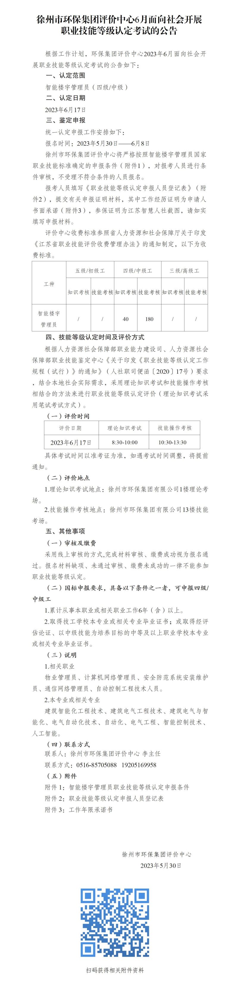 徐州市環(huán)保集團(tuán)評價中心6月面向社會開展職業(yè)技能等級認(rèn)定考試的公告