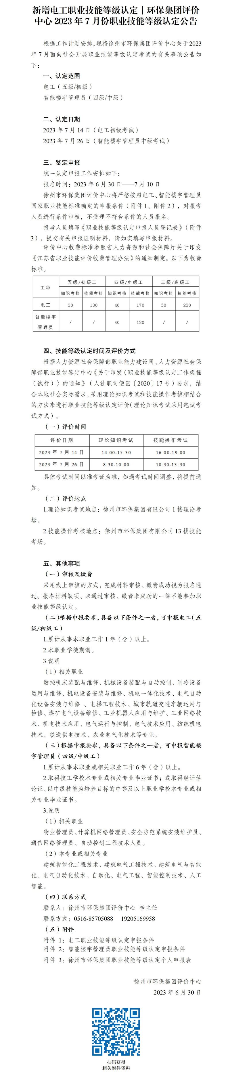 新增電工職業(yè)技能等級(jí)認(rèn)定 | 環(huán)保集團(tuán)評(píng)價(jià)中心2023年7月份職業(yè)技能等級(jí)認(rèn)定公告