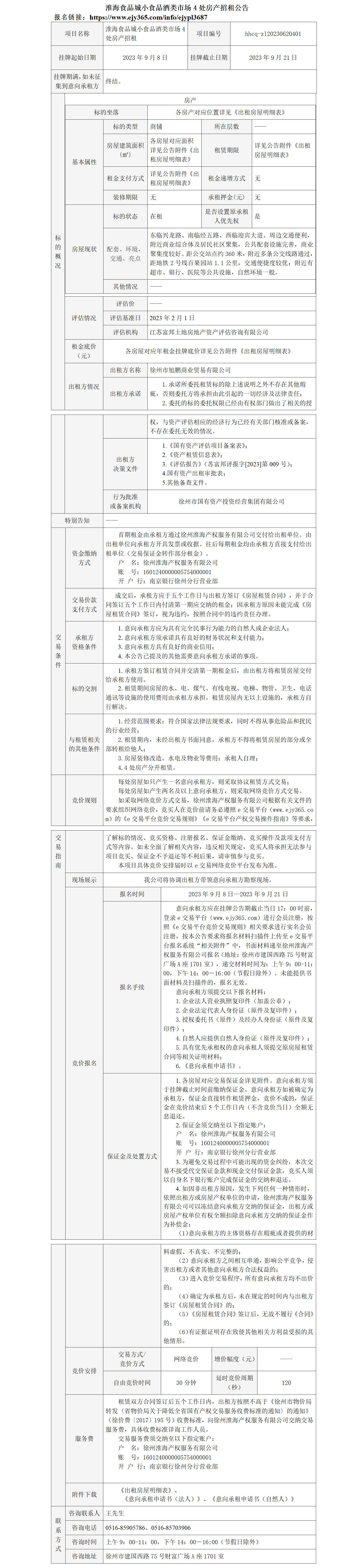 淮海食品城小食品酒類市場4處房產(chǎn)招租公告