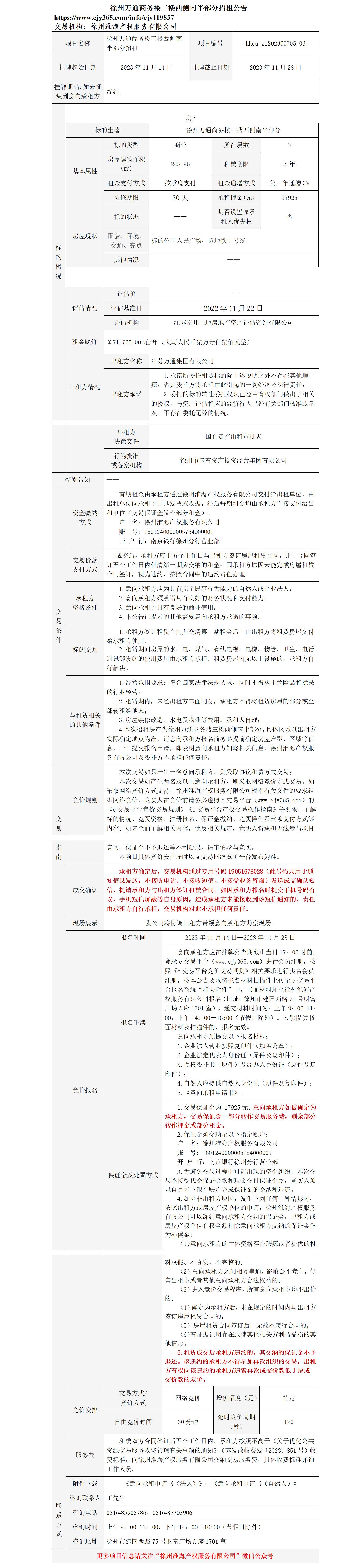 徐州萬通商務樓三樓西側(cè)南半部分招租公告