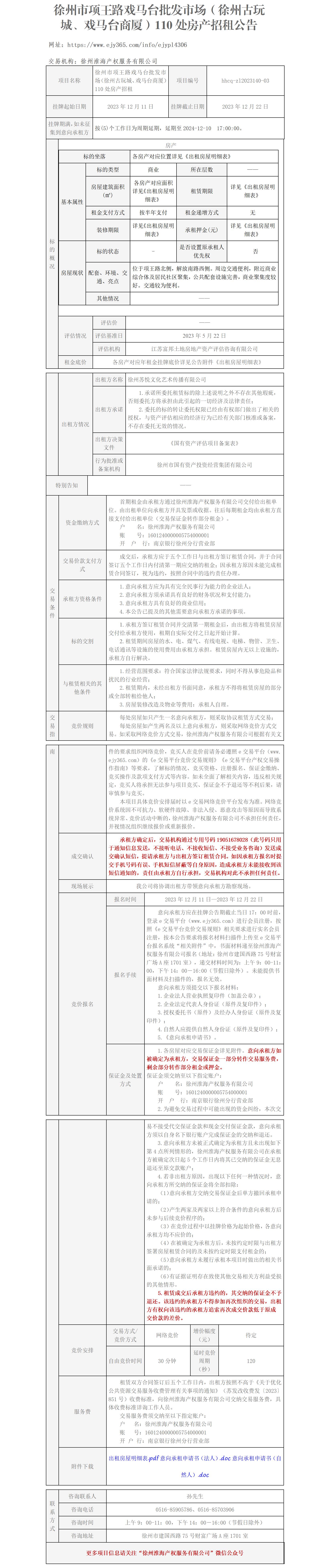 徐州市項王路戲馬臺批發(fā)市場(徐州古玩城、戲馬臺商廈)110處房產(chǎn)招租公告