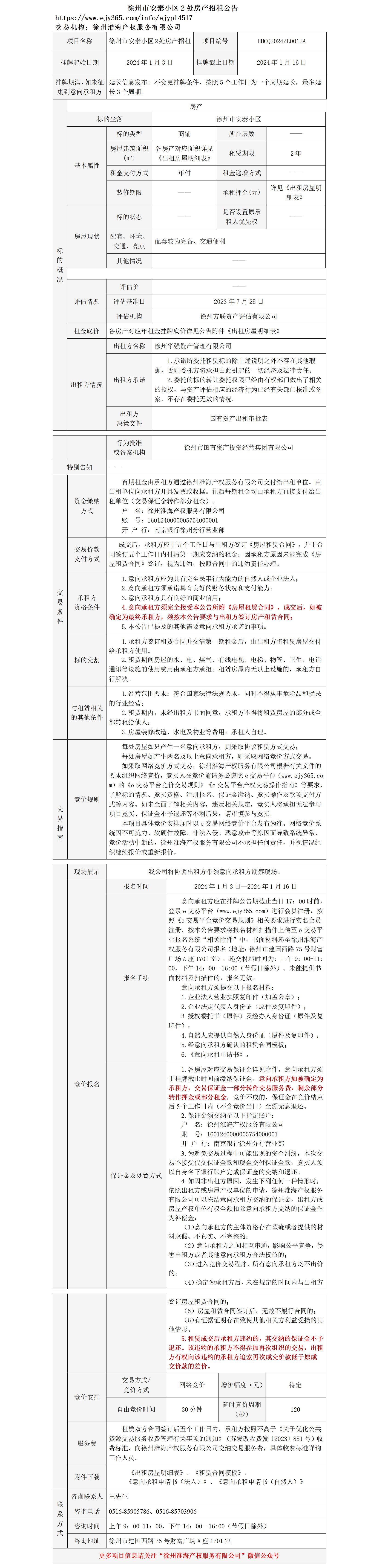 徐州市安泰小區(qū)2處房產(chǎn)招租公告
