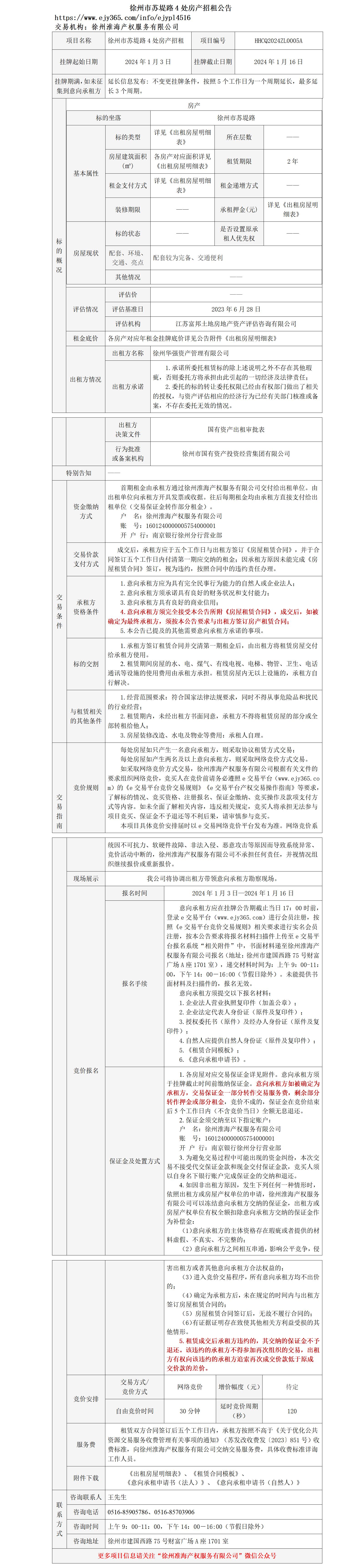 徐州市蘇堤路4處房產(chǎn)招租公告