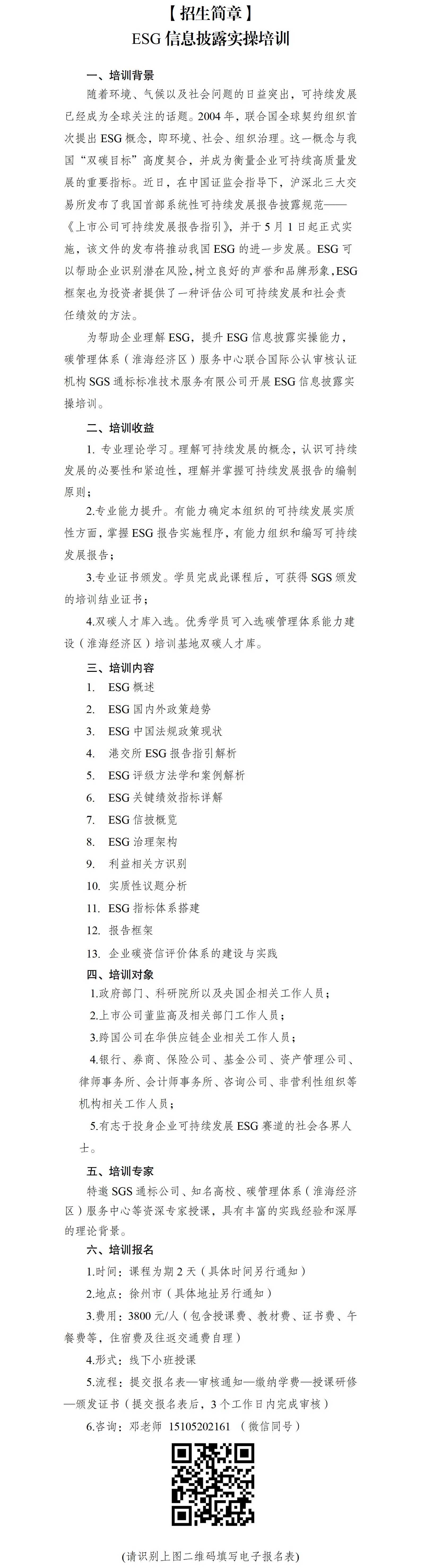 【招生簡章】ESG信息披露實(shí)操培訓(xùn)