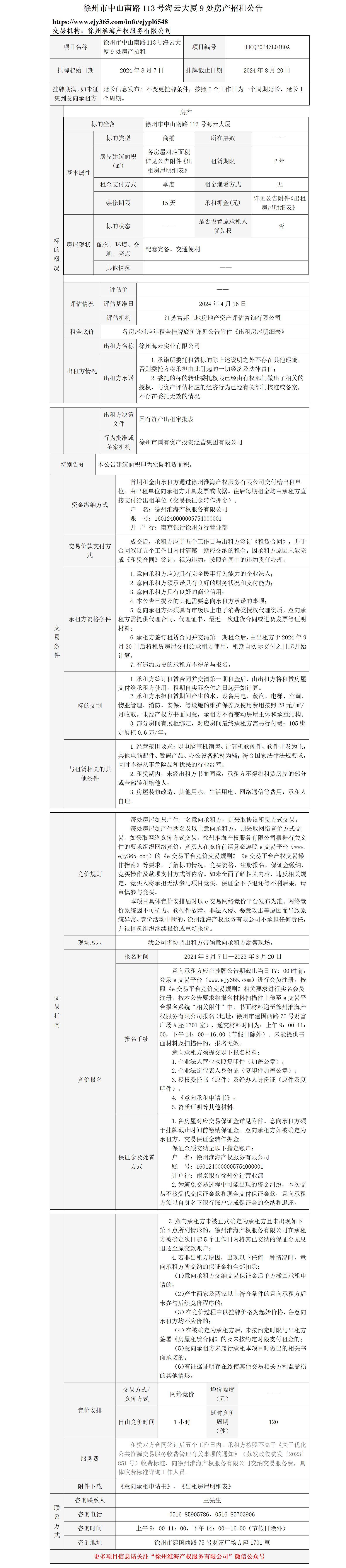 徐州市中山南路113號海云大廈9處房產(chǎn)招租公告
