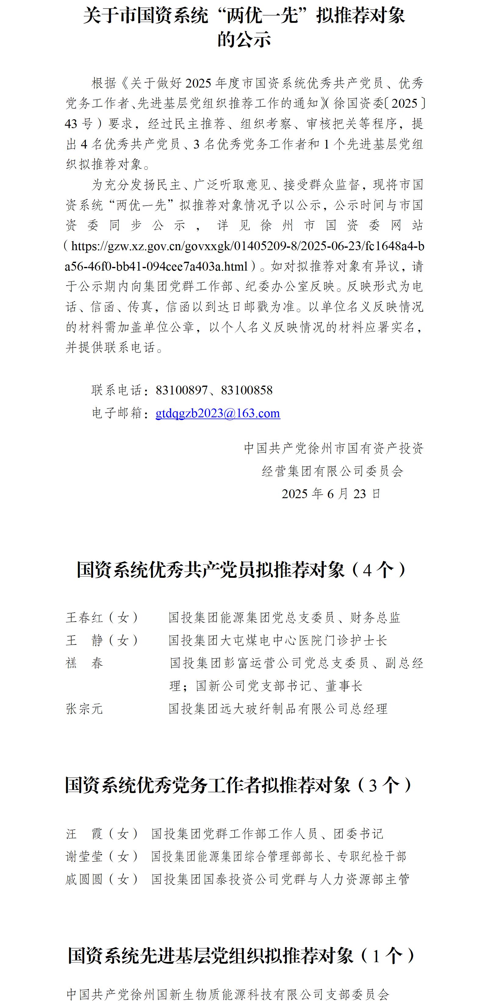 關(guān)于市國(guó)資系統(tǒng)“兩優(yōu)一先”擬推薦對(duì)象的公示
