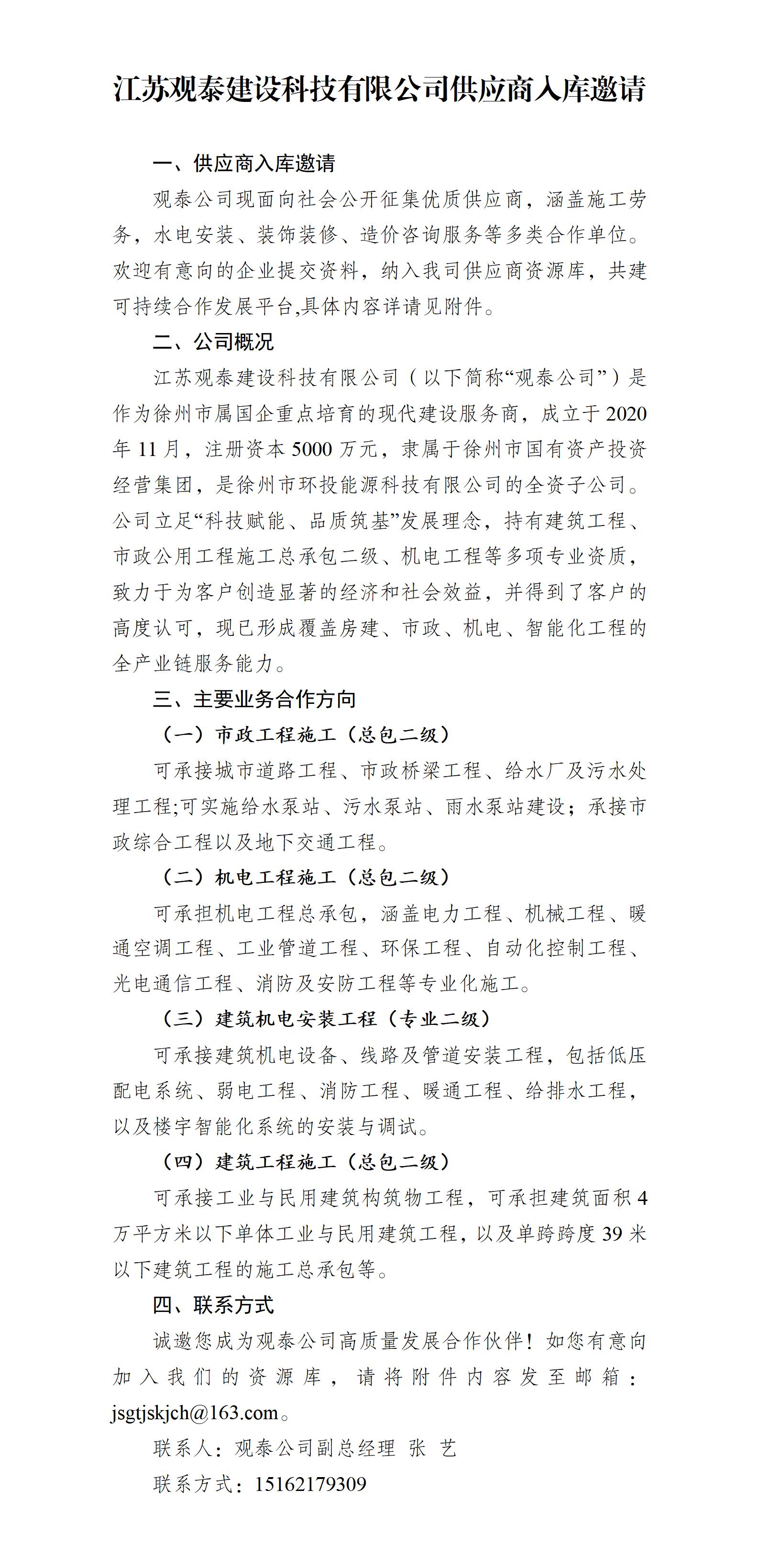 江蘇觀泰建設(shè)科技有限公司供應(yīng)商入庫邀請