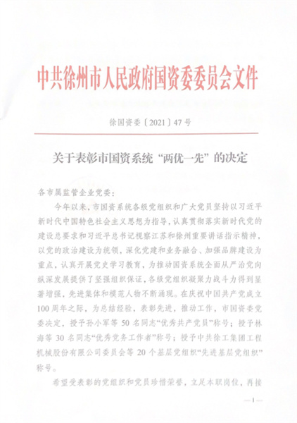 集團公司2個集體和8名個人榮獲市國資系統(tǒng)“兩優(yōu)一先”表彰