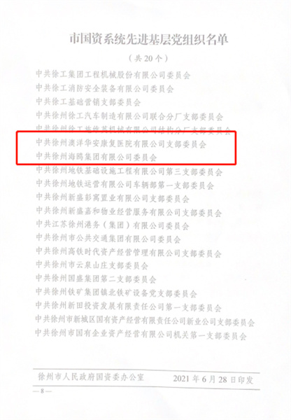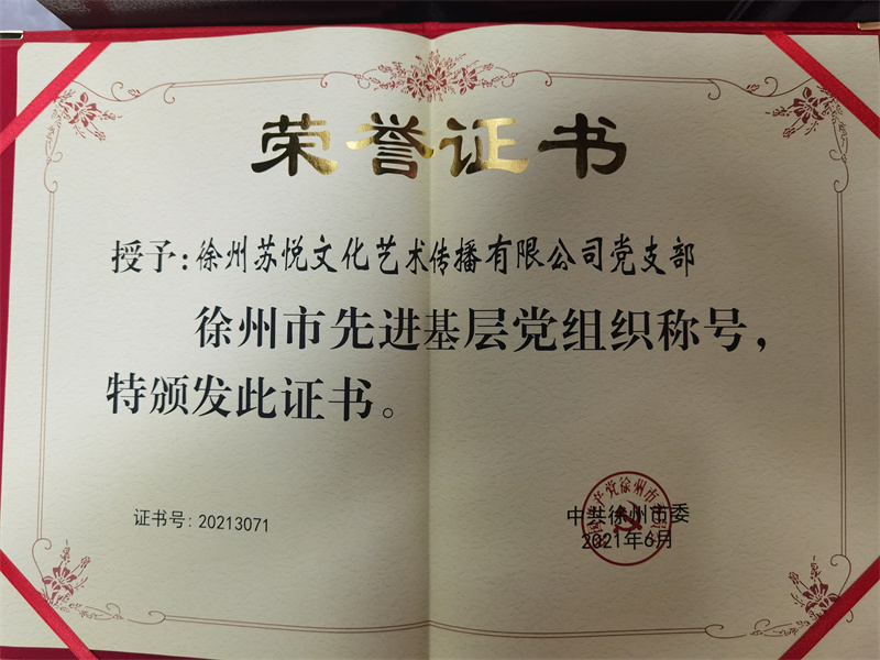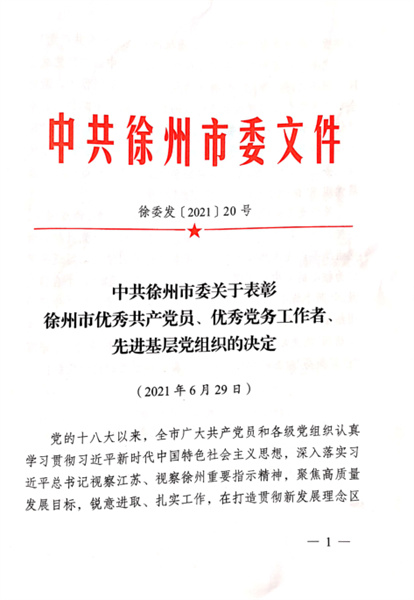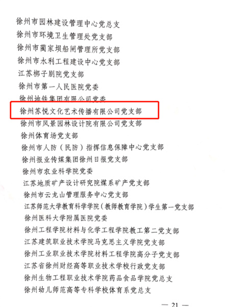 蘇悅黨支部榮獲徐州市“先進基層黨組織”榮譽稱號