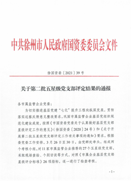 環(huán)能機關黨支部、蘇悅黨支部獲市國資委“五星級黨支部”稱號