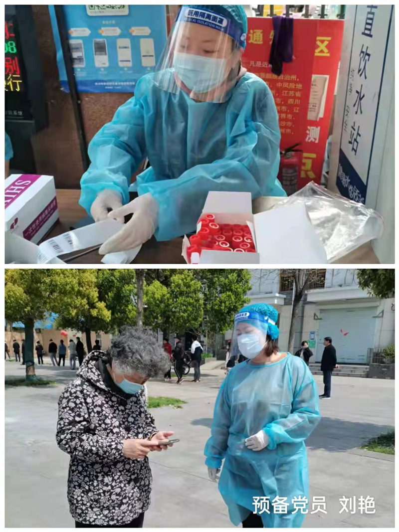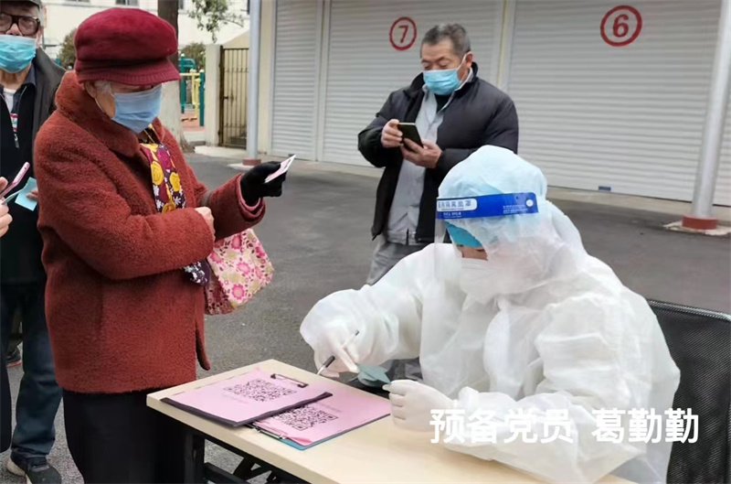 鼓樓區(qū)防疫告急之時(shí),支部居住在鼓樓區(qū)的6名同志又及時(shí)沖鋒到一線,預(yù)備黨員劉艷、毋世新,職工群眾李冬、毋世忠,還有黃碼轉(zhuǎn)綠碼的黨員苗艷、黎偉,全部第一時(shí)間迅速參與到華康社區(qū)、王場社區(qū)、琵琶社區(qū)、九里社區(qū)、紅杉樹社區(qū)等各個(gè)社區(qū)的志愿者服務(wù)中,排查登記、信息錄入、秩序引導(dǎo)、測溫驗(yàn)碼……共同保衛(wèi)鼓樓!預(yù)備黨員劉艷在華康社區(qū)志愿服務(wù),每天從早上出門到傍晚歸家,有時(shí)忙起來一天都顧不上吃一頓飯,她用無私奉獻(xiàn)的精神在這場沒有硝煙的戰(zhàn)“疫”中經(jīng)受住了考驗(yàn)。疫情就是命令,防控就是責(zé)任,居住鼓樓區(qū)的6名同志用實(shí)際行動(dòng)踐行了“國投人”在疫情防控斗爭中的承諾!