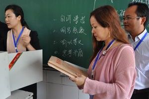集團(tuán)公司領(lǐng)導(dǎo)在考場(chǎng)合影