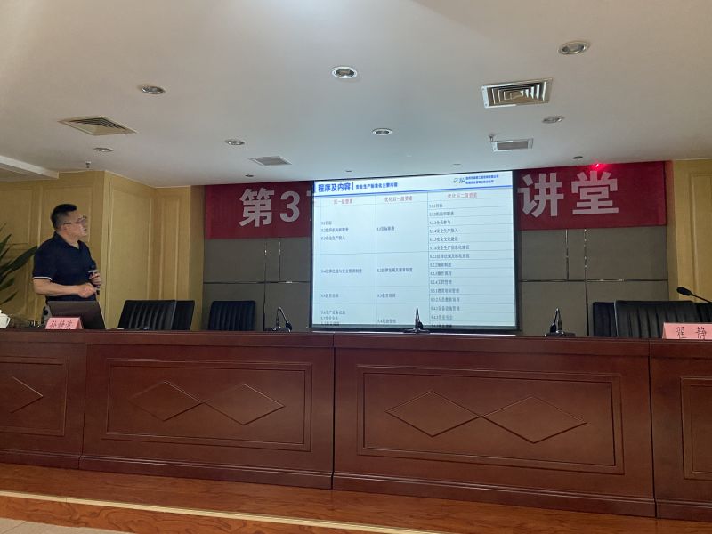 培訓(xùn)會上,孫靜波圍繞安全生產(chǎn)標(biāo)準(zhǔn)化的發(fā)展與現(xiàn)狀、特點和作用、程序和內(nèi)容、體會與總結(jié)及集團(tuán)公司“三位一體”工作對安全生產(chǎn)標(biāo)準(zhǔn)化創(chuàng)建的推動作用五個板塊進(jìn)行細(xì)致講解,分享了安全生產(chǎn)標(biāo)準(zhǔn)化創(chuàng)建過程中常見的問題、解決思路和安全生產(chǎn)標(biāo)準(zhǔn)化各構(gòu)成要素等內(nèi)容,并回答參會人員提問。