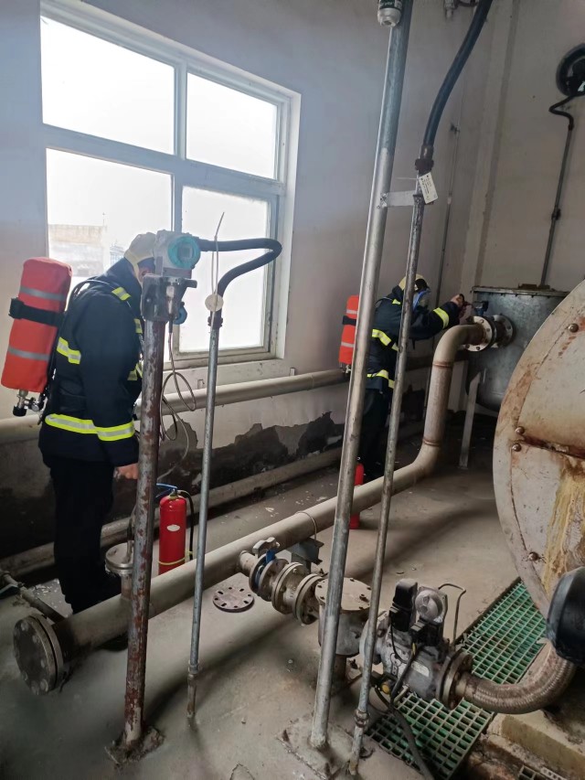 會(huì)后,為提高對(duì)特種設(shè)備爆炸事故的應(yīng)急響應(yīng)和處理能力,在國(guó)新公司鍋爐房開(kāi)展“沼氣管道泄漏”應(yīng)急演練。