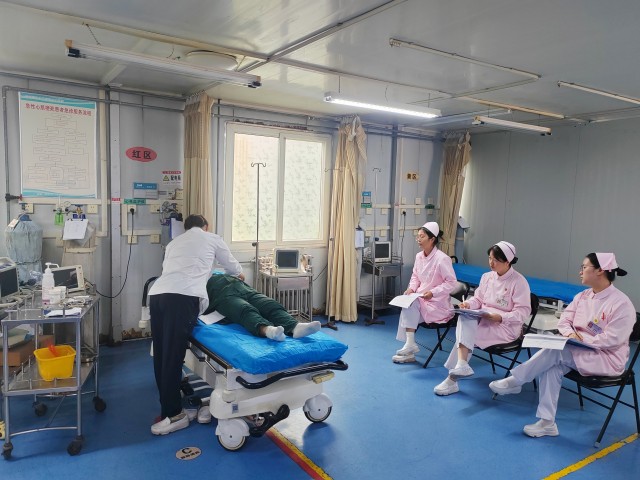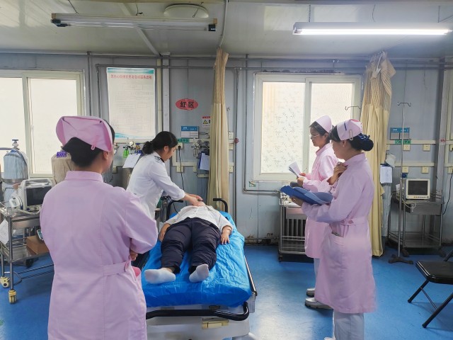 不同于單項(xiàng)技能比武,本次OSCE考核最大的特點(diǎn)是高度模擬臨床真實(shí)情境,強(qiáng)調(diào)工作的連貫性和應(yīng)急判斷能力。考核分為三站,環(huán)環(huán)相扣。第一站,護(hù)士化身為洞察入微的“偵察兵”,在有限時(shí)間內(nèi),面對(duì)由專(zhuān)業(yè)人員扮演的“標(biāo)準(zhǔn)化病人”,進(jìn)行詳細(xì)的病史采集和精準(zhǔn)的身體評(píng)估,此站考驗(yàn)了護(hù)士的溝通技巧和觀察能力;第二站,護(hù)士化身為精準(zhǔn)高效的“戰(zhàn)術(shù)家”,基于第一站的評(píng)估結(jié)果迅速提出核心護(hù)理問(wèn)題,并立即采取相應(yīng)的護(hù)理措施;第三站,護(hù)士化身為沉著果敢的“突擊隊(duì)”,面對(duì)患者病情驟然惡化,第一時(shí)間識(shí)別危急值,果斷采取心肺復(fù)蘇、急救用藥等緊急救治措施。這一站是考核的重中之重,直接檢驗(yàn)護(hù)士在壓力下的心理素質(zhì)、快速反應(yīng)能力和搶救技能。