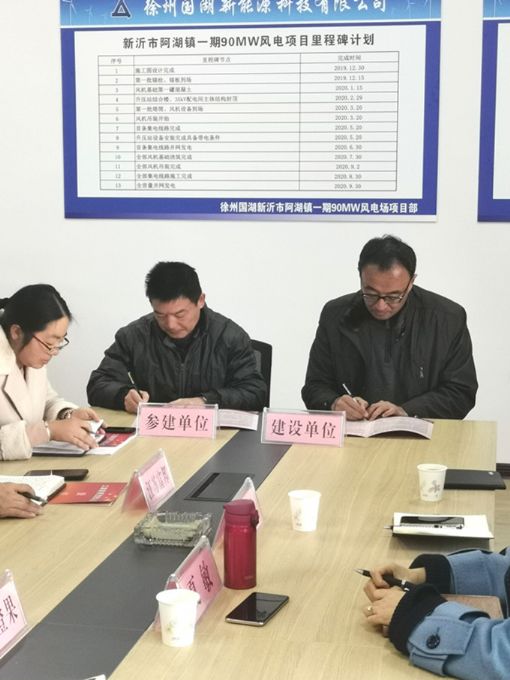 為進(jìn)一步嚴(yán)格貫徹落實(shí)集團(tuán)公司黨委工程建設(shè)廉潔從業(yè)決策部署,有效從源頭預(yù)防各類違規(guī)違紀(jì)違法行為發(fā)生,為新沂市阿湖鎮(zhèn)一期90MW風(fēng)電項(xiàng)目工程建設(shè)、項(xiàng)目管理營(yíng)造良好的廉潔環(huán)境。12月3日下午,國(guó)投環(huán)能公司全資企業(yè)徐州國(guó)湖新能源科技有限公司(以下簡(jiǎn)稱“國(guó)湖公司”)在新沂市阿湖鎮(zhèn)便民服務(wù)中心舉行了《工程建設(shè)廉潔從業(yè)責(zé)任書》簽字儀式。國(guó)投環(huán)能公司黨總支書記、國(guó)湖公司董事長(zhǎng)孫雷,國(guó)投環(huán)能公司紀(jì)檢聯(lián)系人,國(guó)湖公司風(fēng)電項(xiàng)目部代表及工程總承包、項(xiàng)目監(jiān)理、跟蹤審計(jì)等參建單位代表參加了儀式,簽字儀式由國(guó)投環(huán)能公司總經(jīng)理助理、國(guó)湖公司總經(jīng)理余躍主持。集團(tuán)公司紀(jì)檢監(jiān)察室副主任夏敏到場(chǎng)見證簽訂儀式。