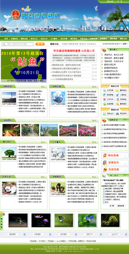 ??谑袌@林局網(wǎng)站是“??谡?wù)”門(mén)戶(hù)網(wǎng)站的組成部分,是海口市園林局宣傳國(guó)家、海南省和海口市綠化建設(shè)管理方針、政策,展示??诔鞘芯G化風(fēng)貌,向公眾提供信息服務(wù)的對(duì)外窗口。